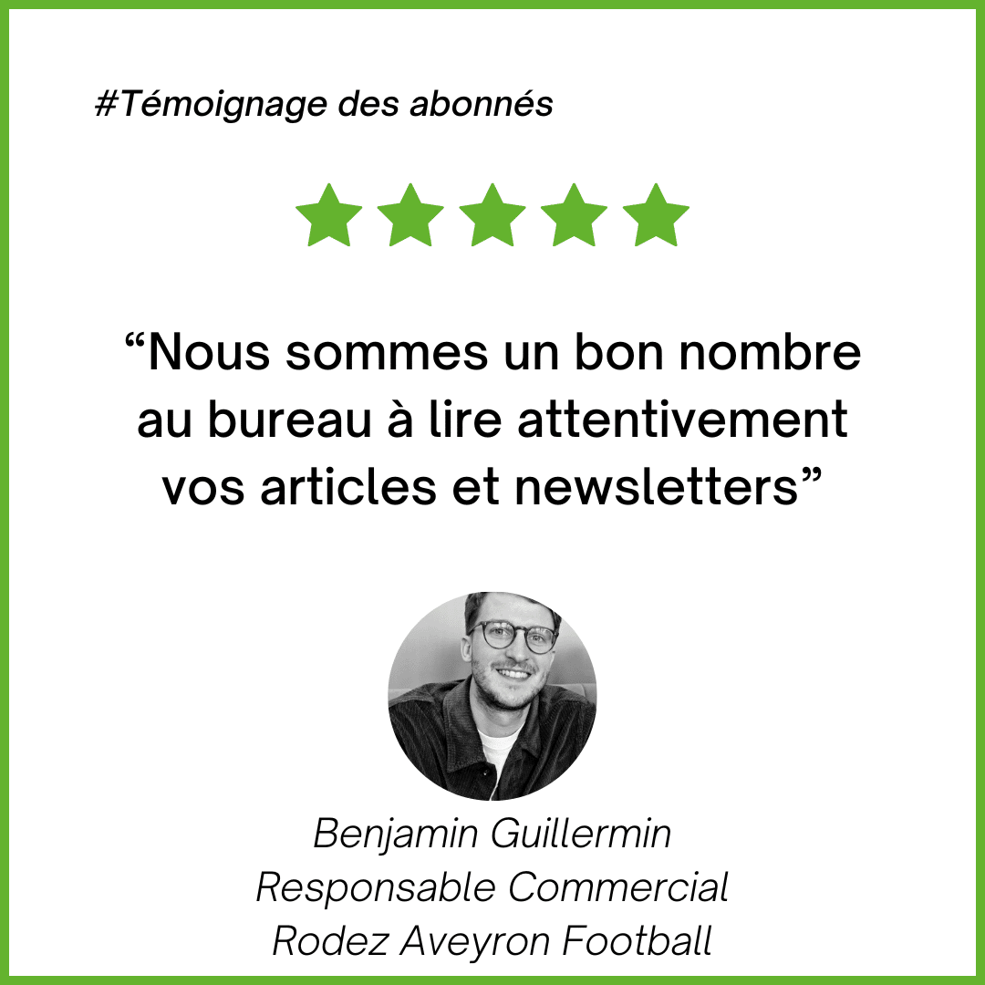 "J’aime toujours jeter un œil aux nouveaux articles d’Ecofoot. Ils mettent en avant des stratégies, bonnes pratiques, idées… vues dans certains clubs ou organismes et les présentent en profondeur grâce à des analyses toujours pertinentes. C’est un bon moyen pour les acteurs du sport business de rester informés sur des nouvelles tendances et de s’inspirer d’autres entités qui ont mis en place des choses qui fonctionnent bien dans leur industrie"