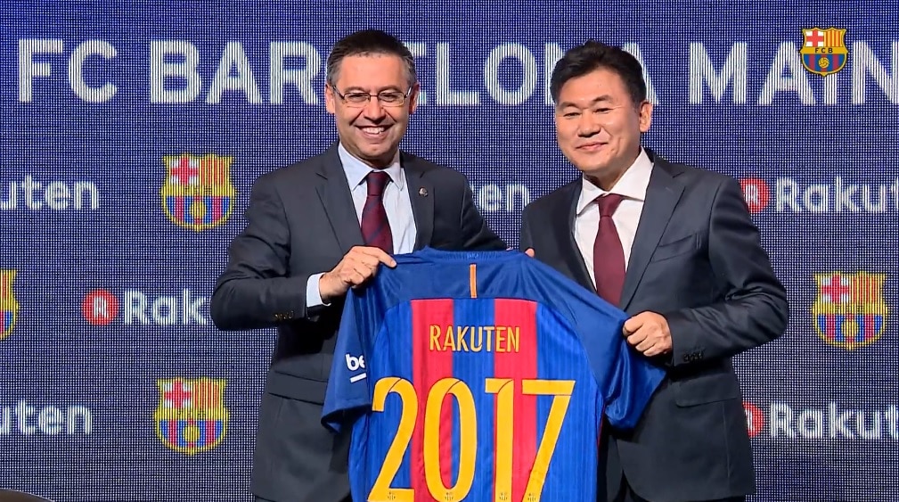Le premier acte a eu lieu au mois de novembre dernier : la direction de Rakuten officialisait alors la signature d’un contrat de sponsoring de 4 ans avec le FC Barcelone ! Depuis le début de la saison, le logo de la firme japonaise s’affiche ainsi sur la tenue officielle du club catalan.