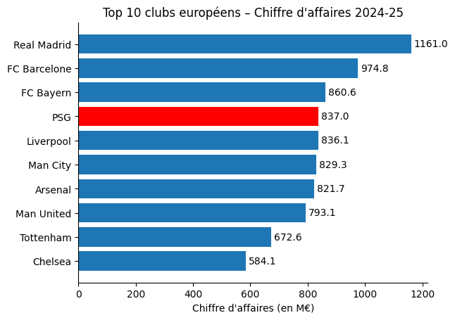 Autre (petit) motif d’inquiétude : alors que la croissance moyenne des revenus au sein de ce TOP 20 est de l’ordre de 11% par rapport à la saison 2023-24 ; le Paris Saint-Germain affiche une hausse de ses revenus de seulement 4%. Parmi le TOP 10, seuls Manchester City et Manchester United font moins bien que le club parisien. Clairement, sur le plan économique, le Paris Saint-Germain a avancé moins vite que la plupart de ses principaux concurrents lors du dernier exercice écoulé malgré des résultats sportifs hors normes.